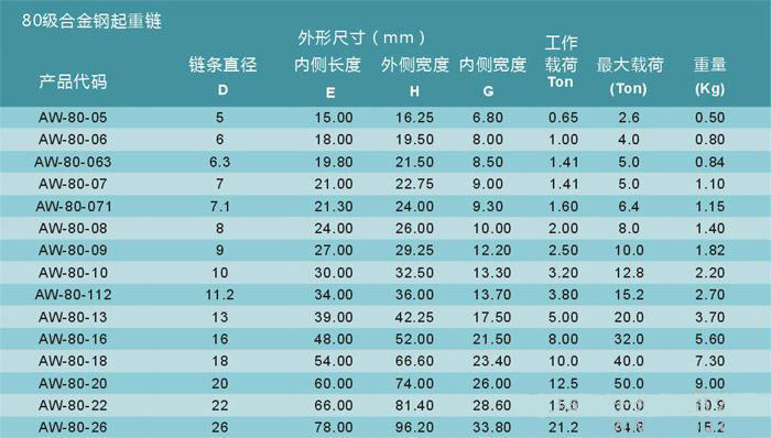 型號(hào): AW-8型 80級(jí)高強(qiáng)度起重鏈