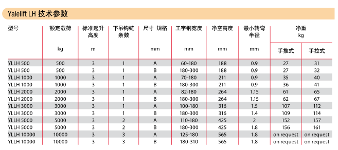 它的額定載荷為500-10000公斤,超低凈空的集成手推或手拉式小車組合是Yalelift IT的升級產(chǎn)品,可適合更低的凈空要求。